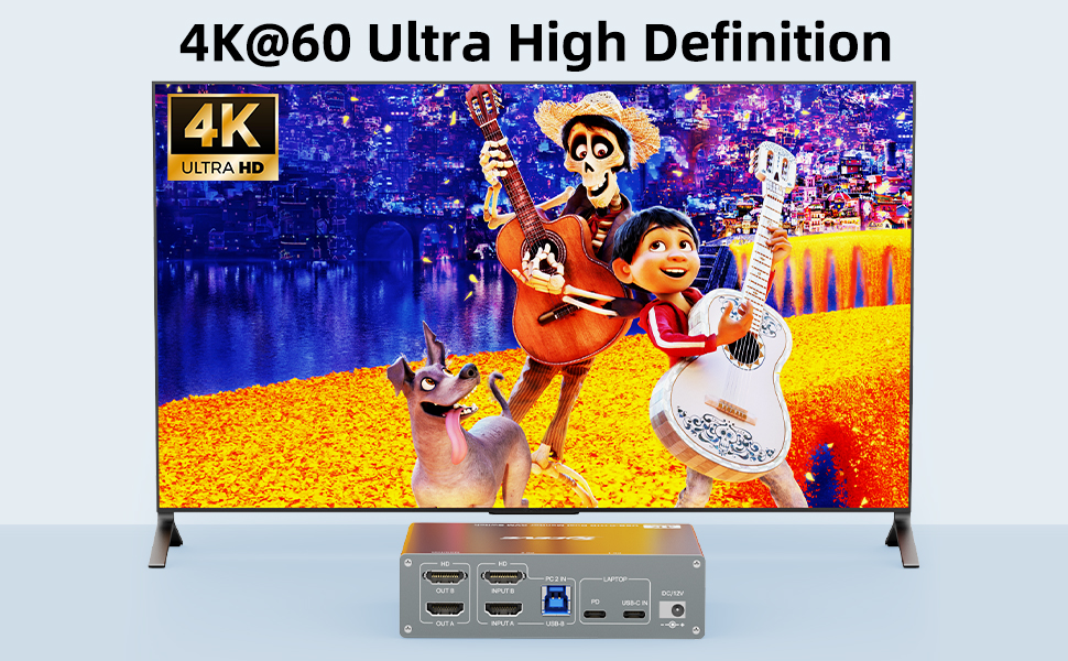 - Two HDMI inputs for HDMI devices such as computers, laptops, TV boxes, DVDs, PS5/4 etc. Please note that when the PS console is connected, the mouse and keyboard cannot control the game via the KVM switch.