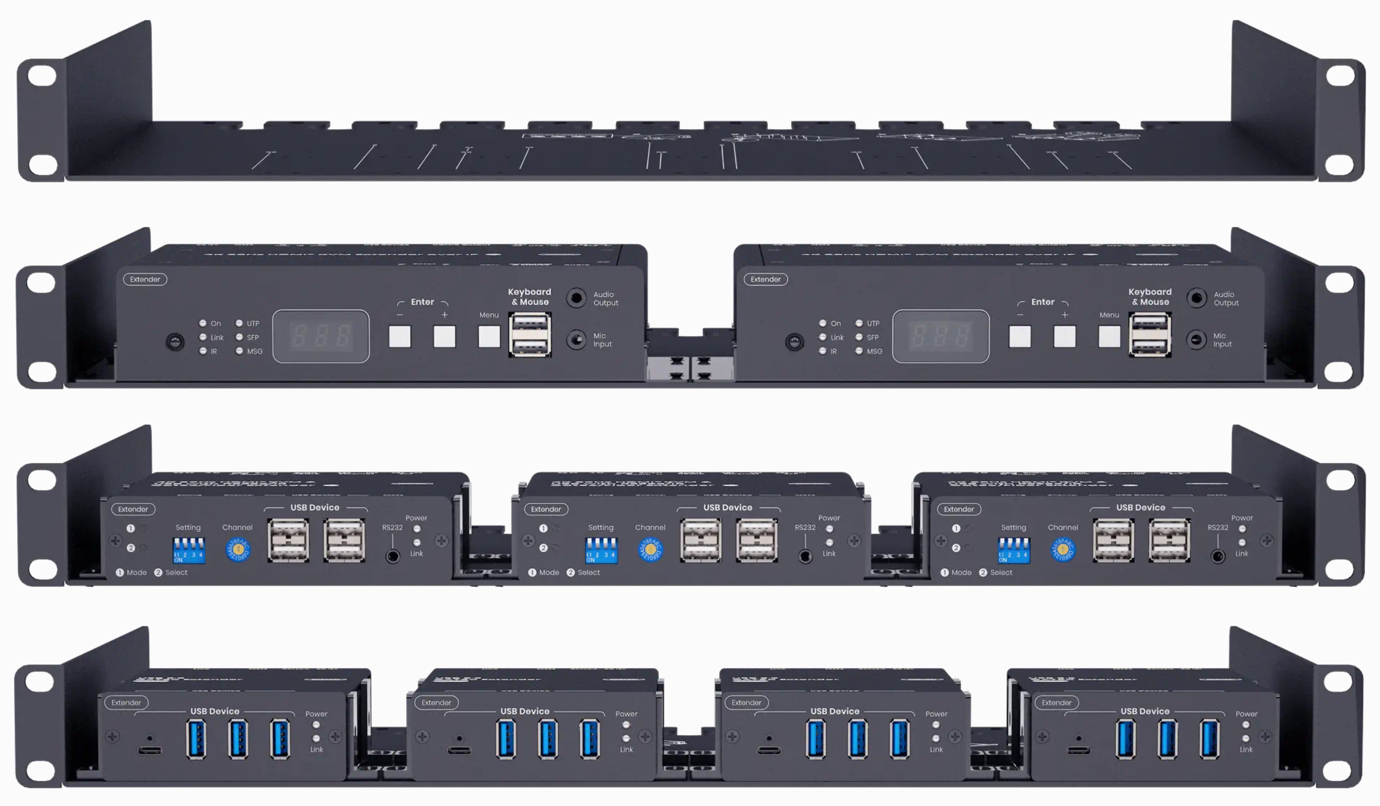 Die Systemintegration umfasst häufig verschiedene Geräte wie Extender, Switches, Splitter und Matrizen sowie Umgebungskontrolleinheiten, Computerserver, DVRs, NVRs und mehr.