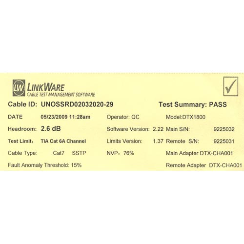 - bis 500MHz: 100% Cat.6 Test und 100% Cat.6A Test inkl. beiliegendem Testprotokoll