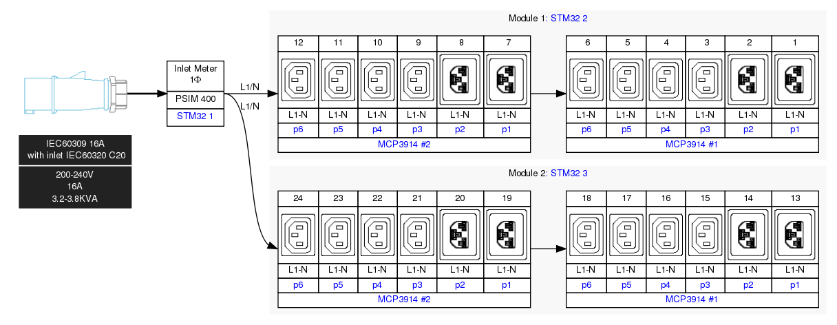 Output Connections: 16 x C13, 8 x C19