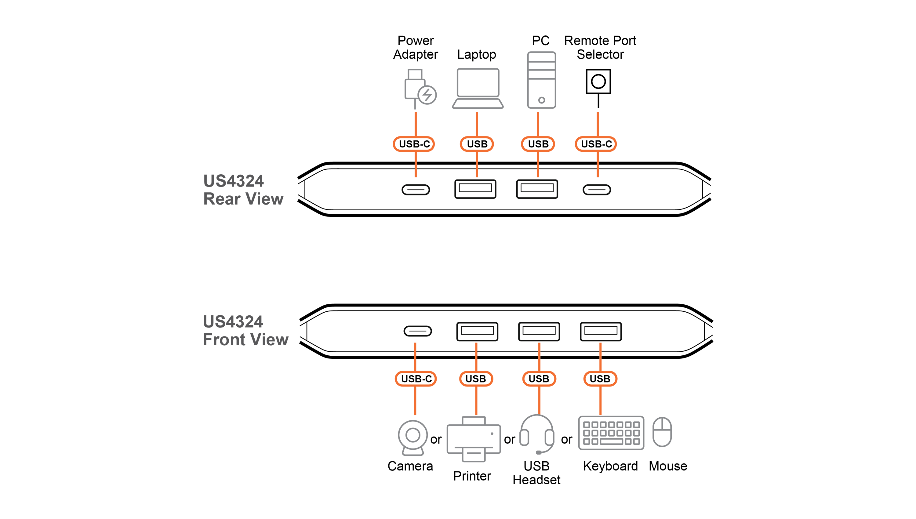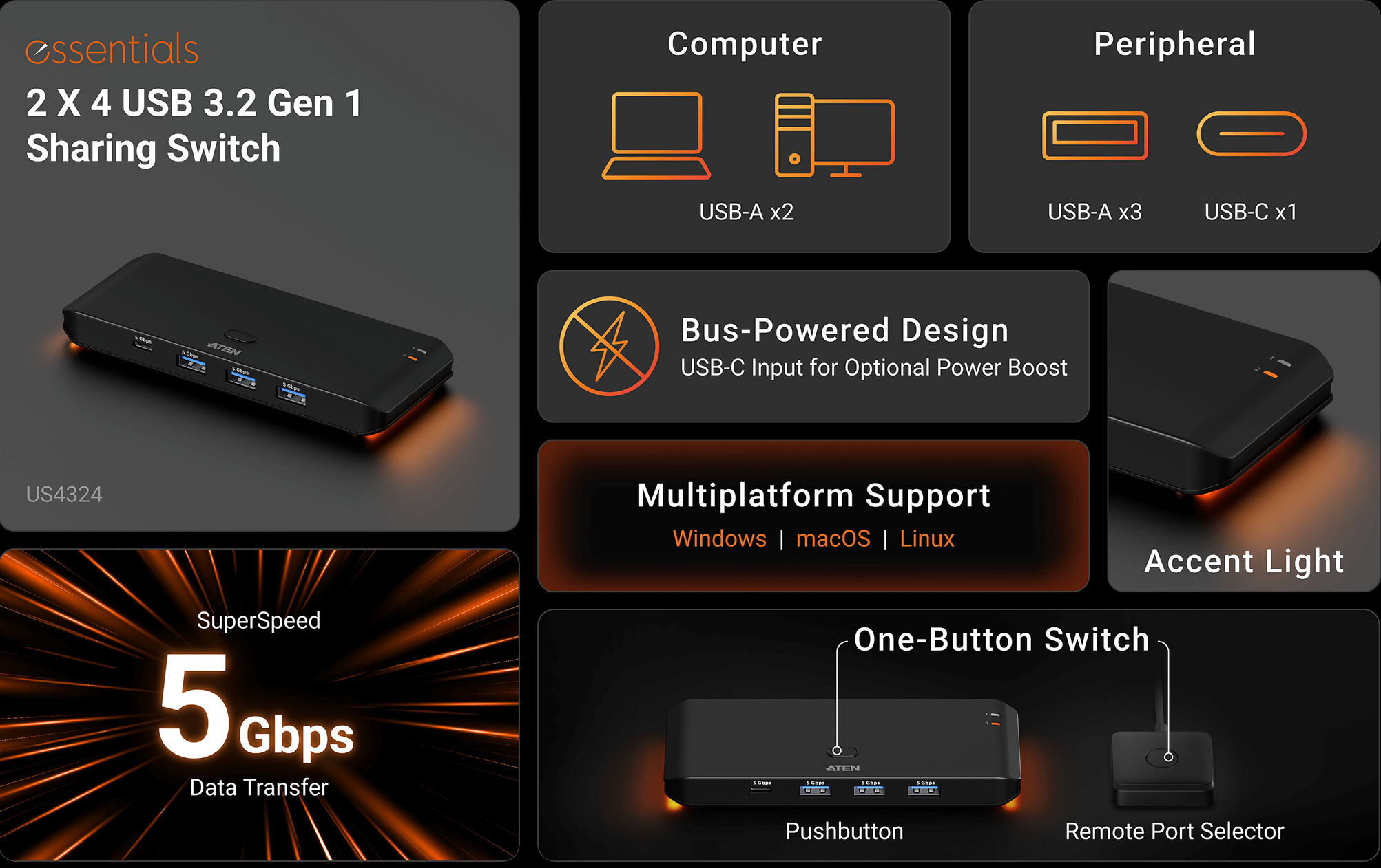 1 x US4324 2 x 4 USB 3.2 Gen 1 Sharing Switch