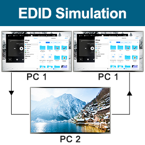 - Unterstützt die EDID-Emulation: Der KVM-Switch verfügt über eine EDID-Emulation, die die Auflösung und Bildwiederholfrequenz automatisch anpasst und speichert. Die Bedienung wechseln, ohne das ursprünglichen Fensterpositionen zu verändern.