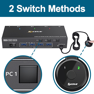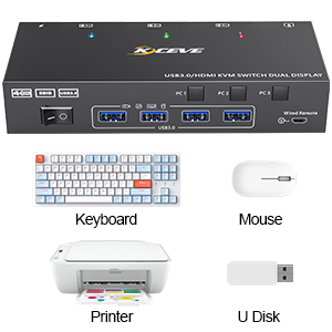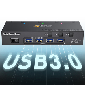- KVM-Switch 2 Monitore mit 4 USB 3.0 Port bis zu 5 Gbit/s: Mit dem Dual-Monitor KVM-Switch für 3 Computer teilen Sie sich 2 Monitore und 4 USB 3.0-Geräte ohne die Stecker zu ziehen. Auch kabellose oder Gaming-Tastaturen/Mäuse, Drucker, Scanner und andere USB-Geräte werden sicher mit umgeschaltet. Der HDMI USB 3.0 Switch unterstützt 5 Gbit/s und ist abwärtskompatibel mit USB 2.0/1.1-Geräten. Konform mit HDMI 2.0, HDCP2.2
