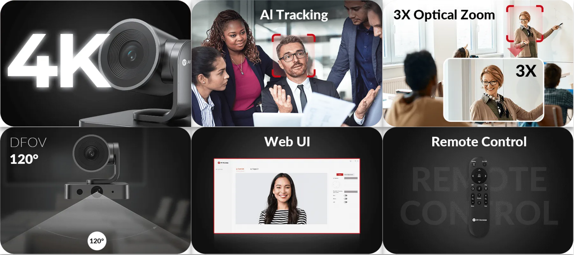 ● Smart AI Modes: Beinhaltet eine Einzelgalerie, Moderatorenverfolgung und automatisches Framing.