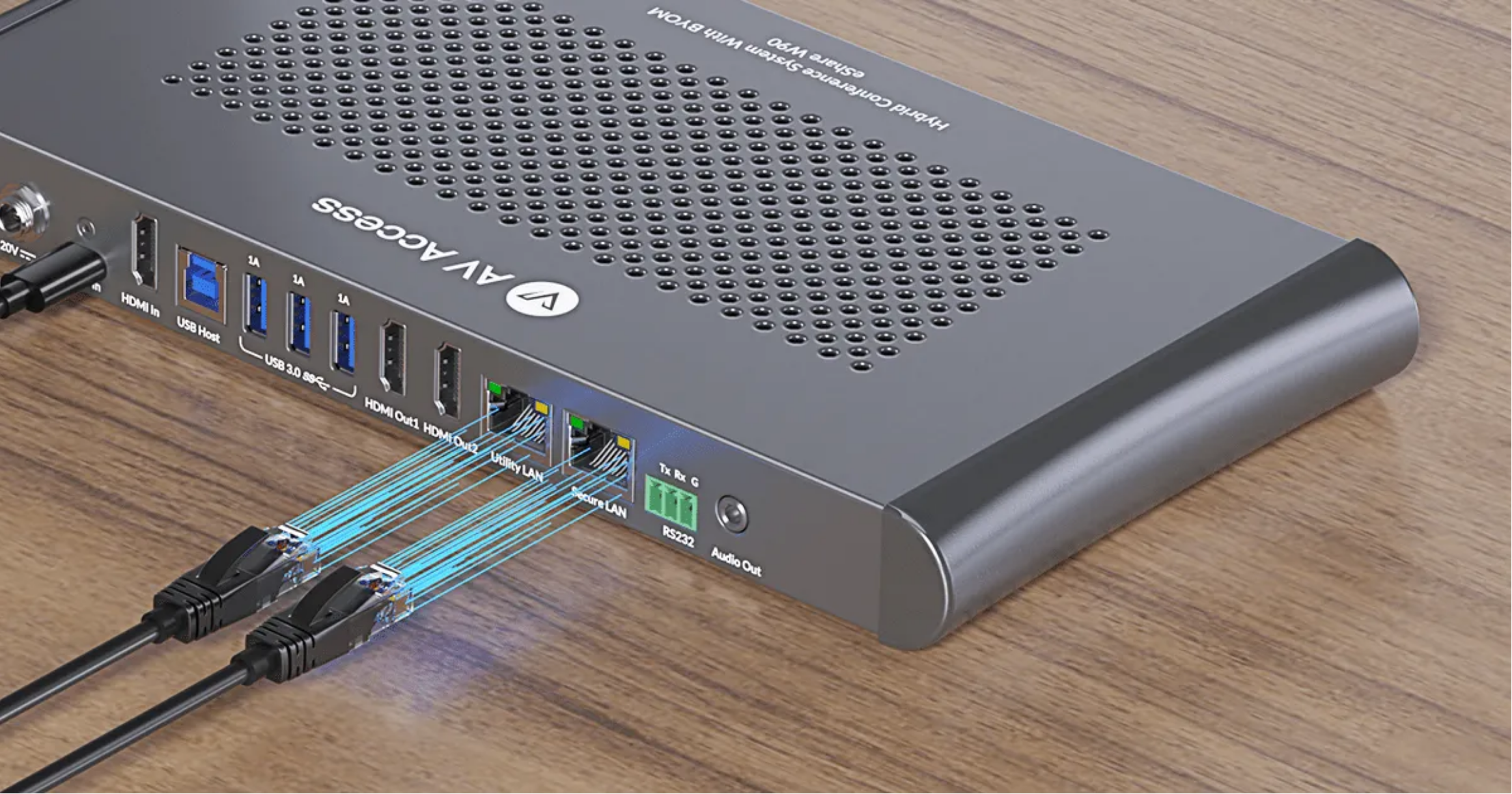 Funktioniert einwandfrei mit Webcams der AV Access BizEye-Serie, Freisprecheinrichtungen/Videobars der AnyCo-Serie und Touchscreen-Panels. Unterstützt außerdem beliebte Marken wie Logitech, Jabra und Poly und sorgt so für ein reibungsloses und flexibles Meeting-Erlebnis.