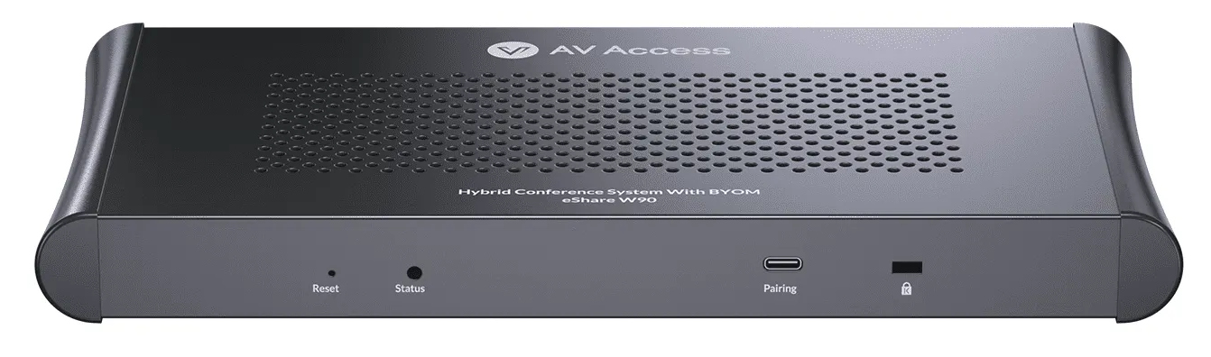 Erschließen Sie mit eShare W90 wireless (Funk) Videokonferenz-System ein neues Level für Hybrid-Meetings. Wireless, USB-C- und HDMI-Eingänge, zwei HDMI-Ausgänge und zwei Gigabit-LAN-Ports sorgen für mühelose Konnektivität. Der voll ausgestattete USB-C-Anschluss unterstützt Video, USB 3.0, Gigabit-Ethernet und 65-W-Laden – alles über ein einziges Kabel. Diese Plug-and-Play-Lösung unterstützt sowohl kabelgebundene als auch kabellose Verbindungen und funktioniert mit einem USB-C-Dongle. Erleben Sie reibungslose, sichere und hocheffiziente Zusammenarbeit!
