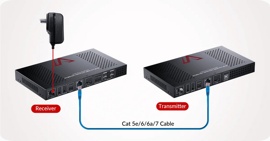 One-Way Power über HDBaseT (PoH)Vereinfachen Sie Ihr Setup mit PoH-Technologie und treiben Sie sowohl den Sender als auch den Empfänger über eine einzige Verbindung zum Empfänger an. Dieses intelligente Design reduziert Kabel und hält Ihre Installation ordentlich und ordentlich, ideal für den professionellen Einsatz. |