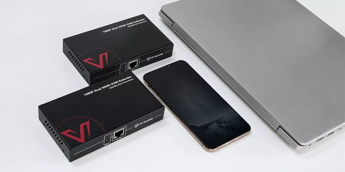 Der AV Access HDEX60-DM ist ein HDMI-KVM-Extender-Kit für zwei Monitore. Er kann zwei 1080P-HDMI-Signale zusammen mit USB 2.0 bis zu 60 m / 197 Fuß über ein einziges Cat 5e/6/6a/7-Kabel übertragen. Dies ohne Verlust oder Verzögerung. Mit seiner Plug-and-Play-Funktion, seinem ultraschlanken Design und seiner hervorragenden Leistung ist der KVM-Extender HDEX60-DM ideal für die Erweiterung Ihres Desktops usw. Er ermöglicht Ihnen die Anzeige zusätzlicher Bildschirme und maximiert Ihre Produktivität.