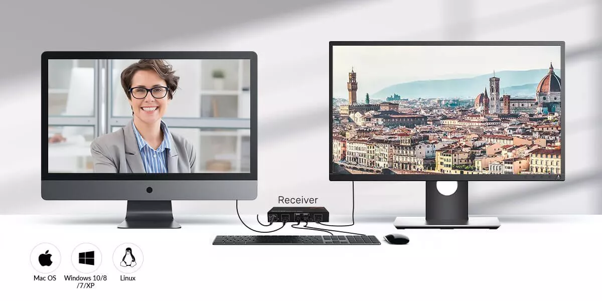 Der Dual-Monitor-HDMI-Extender funktioniert mit allen Betriebssystemen, einschließlich Windows, Mac OS und Linux. Es ist keine zusätzliche Software oder Treiber erforderlich. einfach einstecken und loslegen. Jetzt ist es einfacher denn je, Ihre Workstation oder Ihren Gaming-PC zu erweitern.