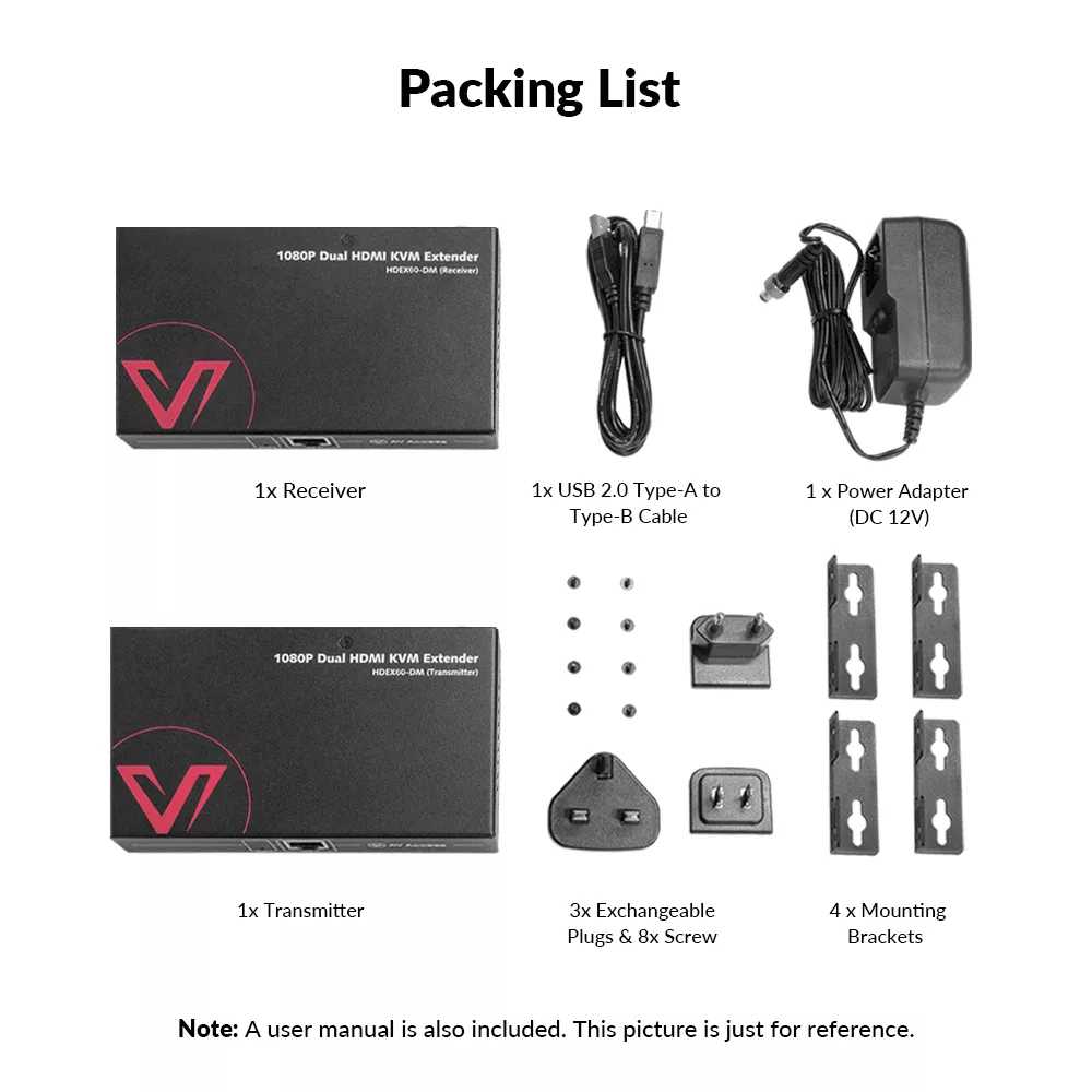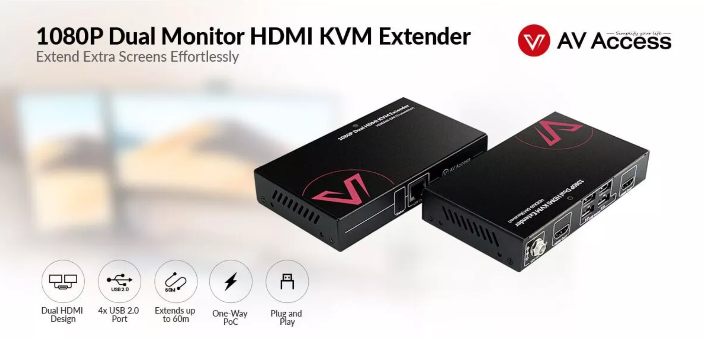 Dual-Monitor HDMI mit 4x USB 2.0 über nur 1 Kabel KVM-Extender-Set mit 2x Zero-Latency 1080p, AV Access HDEX60-DM