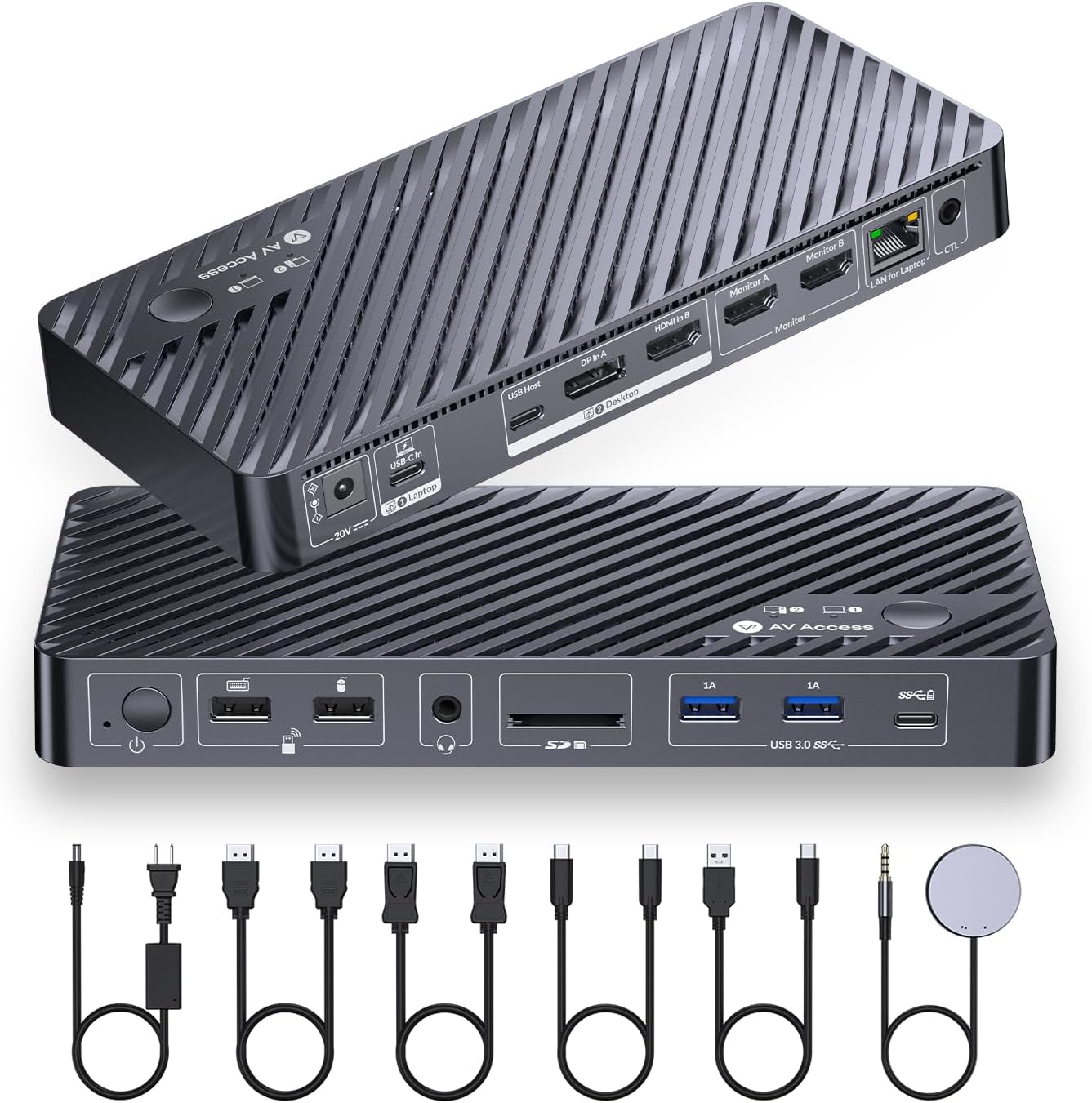 Hybrid Dual-Monitor KVM-Switch für PC und USB-C Notebook 2x 4K60Hz oder 2K144Hz, AV Access iDock-P10