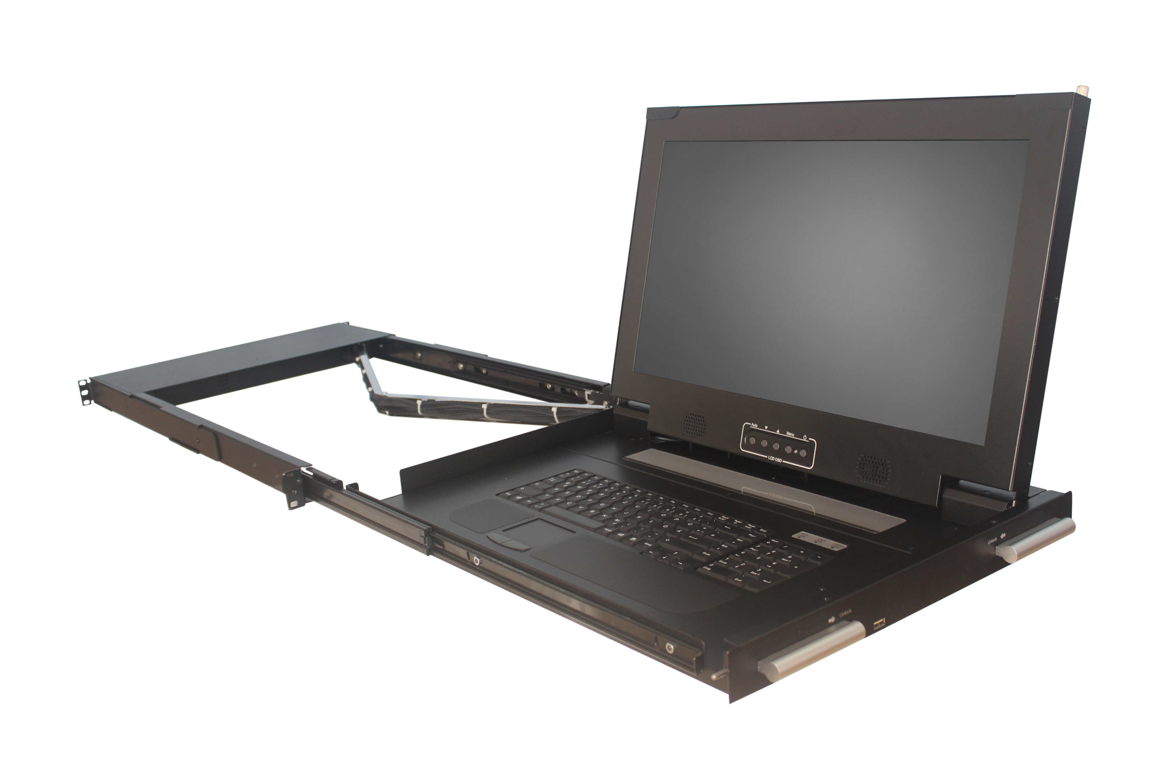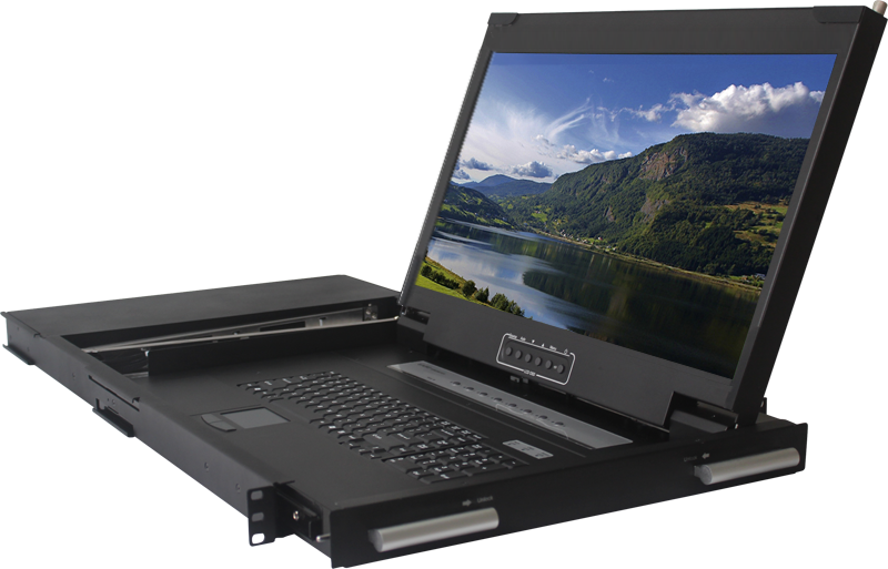 Groß-Monitor 21,5" DVI/VGA/USB FullHD LCD-Konsole mit 21,5" Panel, Tastatur/Touchpad für 19" Racks