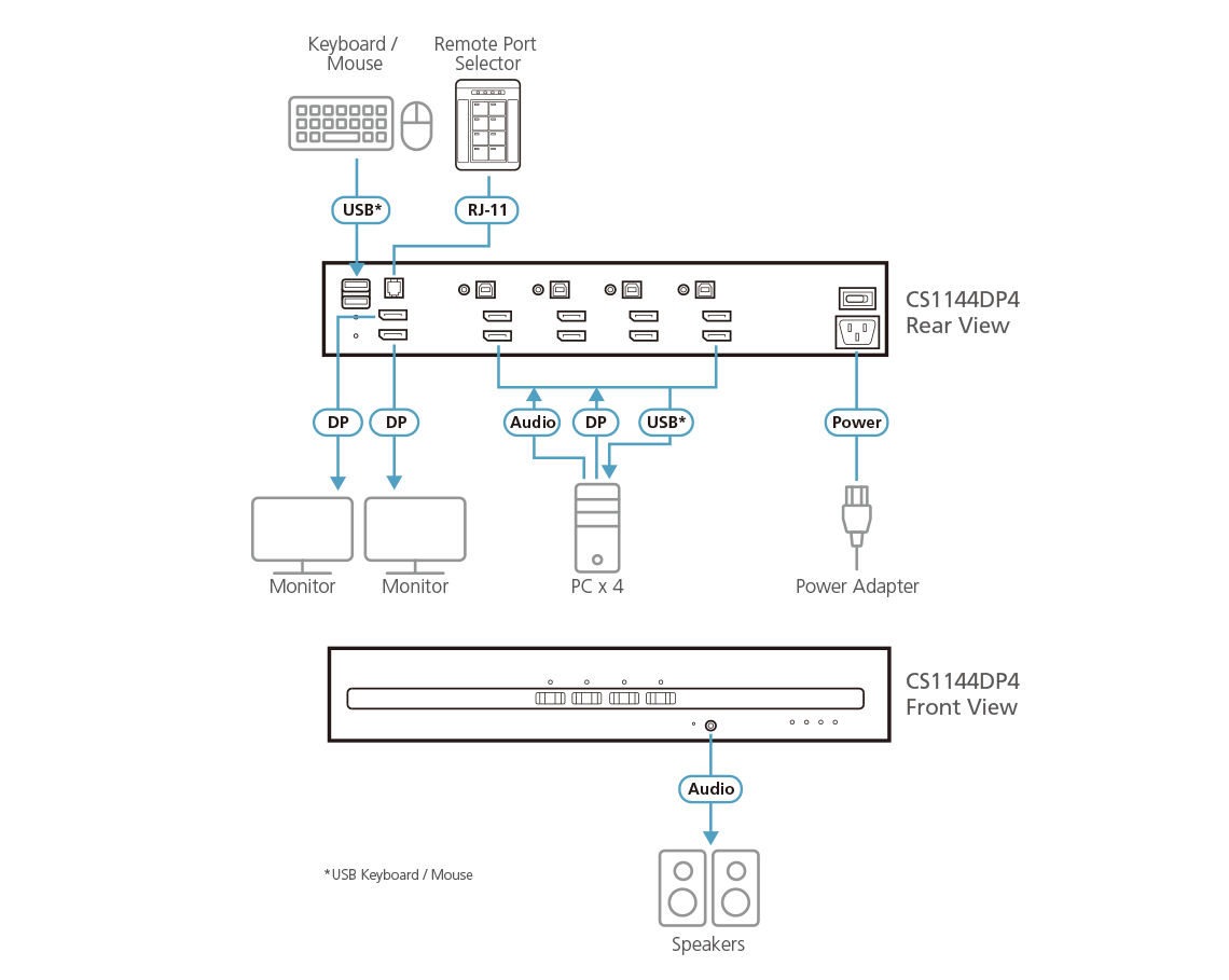 1x CS1144DP4 4-Port-USB-DisplayPort-Dual Display, sicherer KVM-Switch