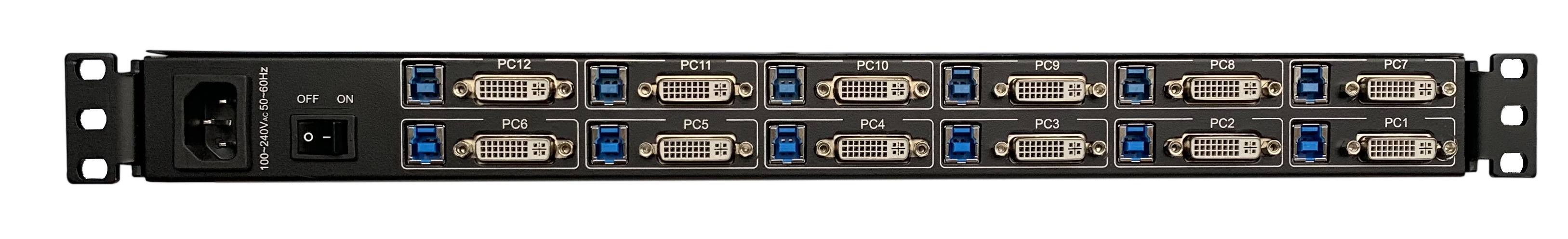 You can choise between 12 DVI / USB computer by buttons or hotkey.
