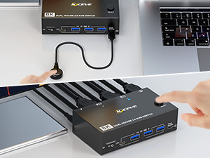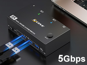 The dual HDMI KVM switch has 4x USB 3.0 ports for sharing USB devices. It supports ultra-fast 5Gbps USB 3.0 data transfer speed; 10 times faster than USB 2.0.