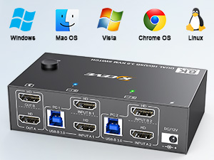 - The KVM switch works with excellent compatibility, driver-free for Windows, Mac OS, Linux.