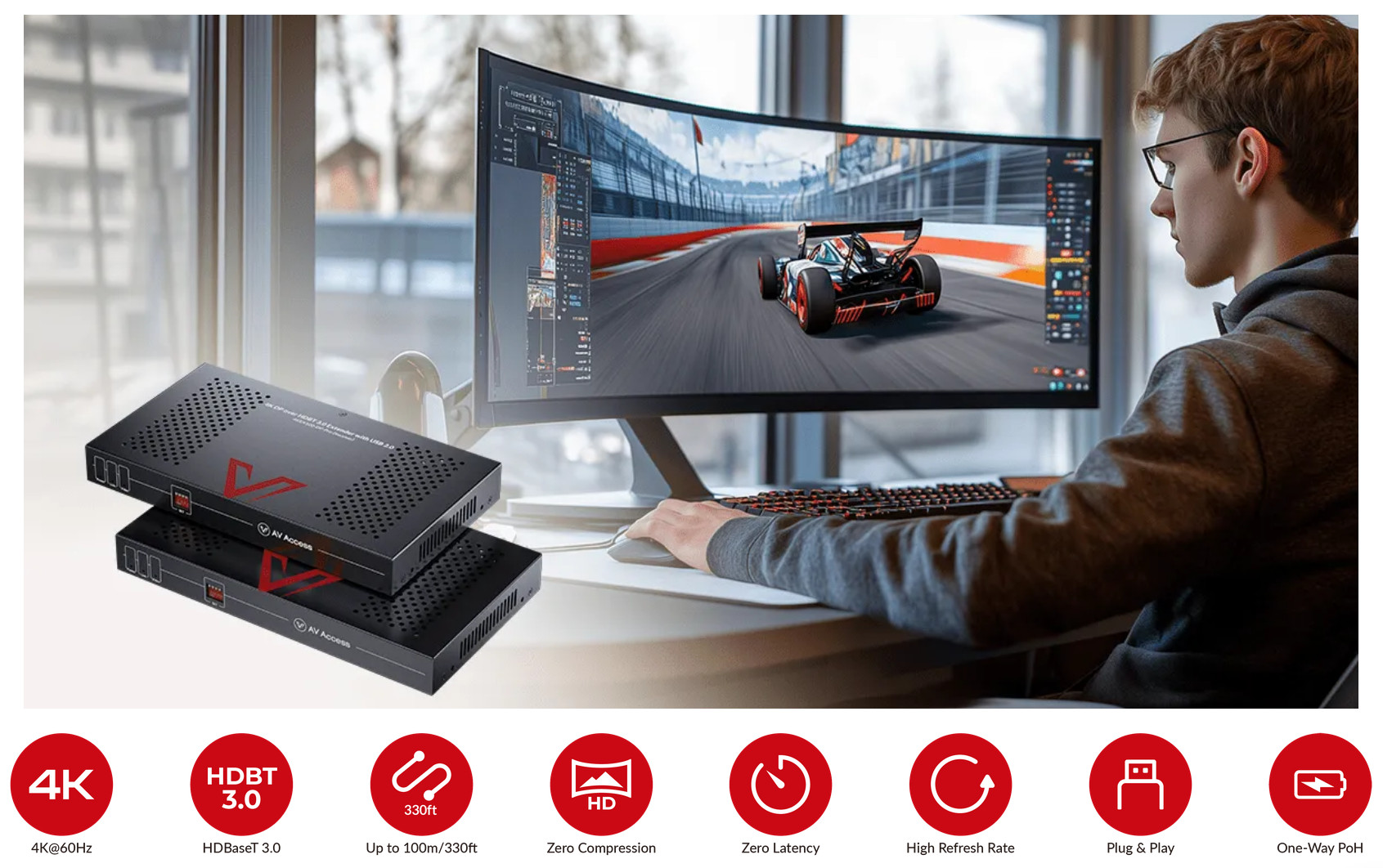 The HDBaseT 3.0 DisplayPort KVM Extender is engineered to deliver seamless, high-quality 4K transmission across diverse professional and gaming environments.