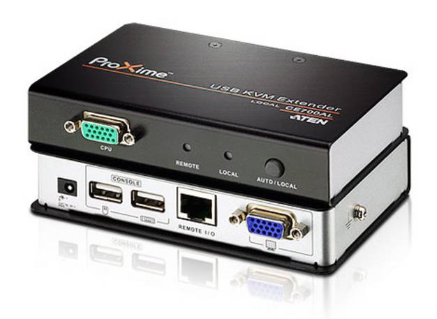 The CE700A is a USB KVM Extender with superior video quality and built-in ESD and surge protection that allows access to a computer system up to 150 meters away from a remote USB console (USB keyboard, monitor, and USB mouse).