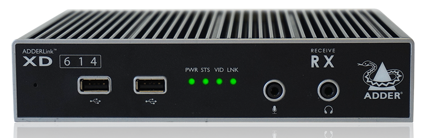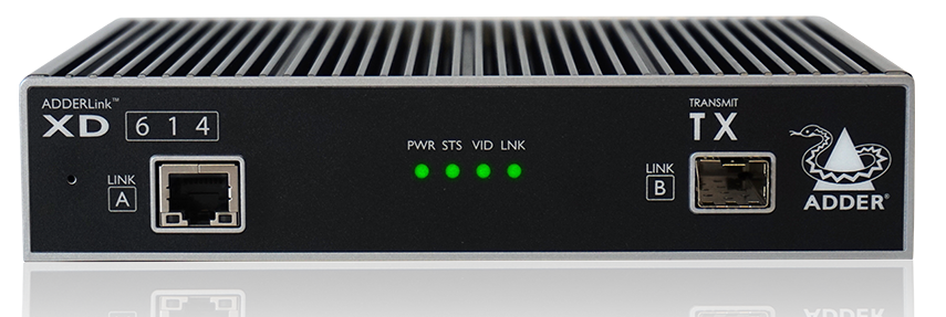 The ADDERLink® XD614 supports both copper and fiber interfaces. It provides a range of up to 100m/328ft over a CAT6 cable link, and up to 4km/2.5 miles over an optical fiber link.