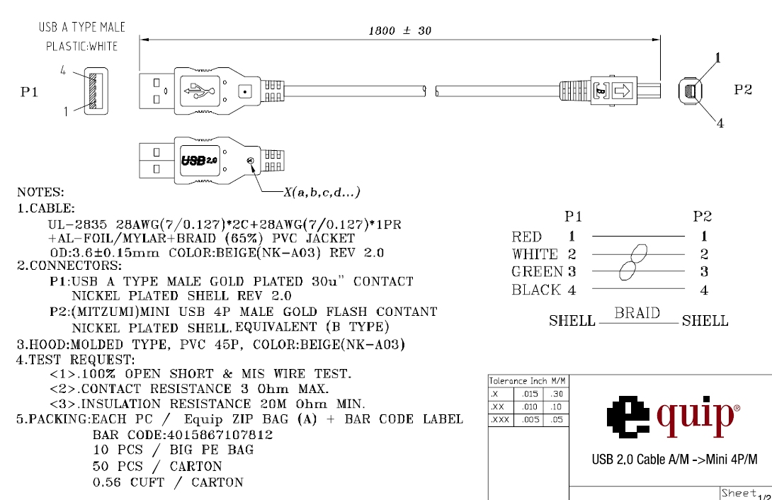Typ A Male / Mini4P Male USB2.0 1.8M Adaptercable - 128520