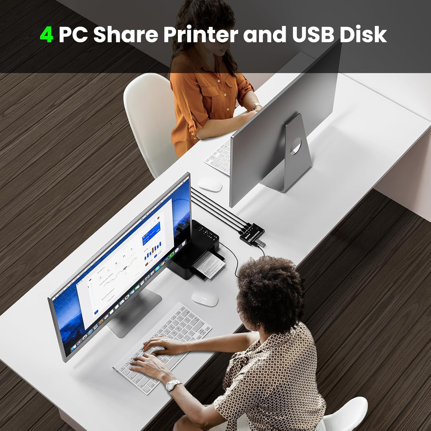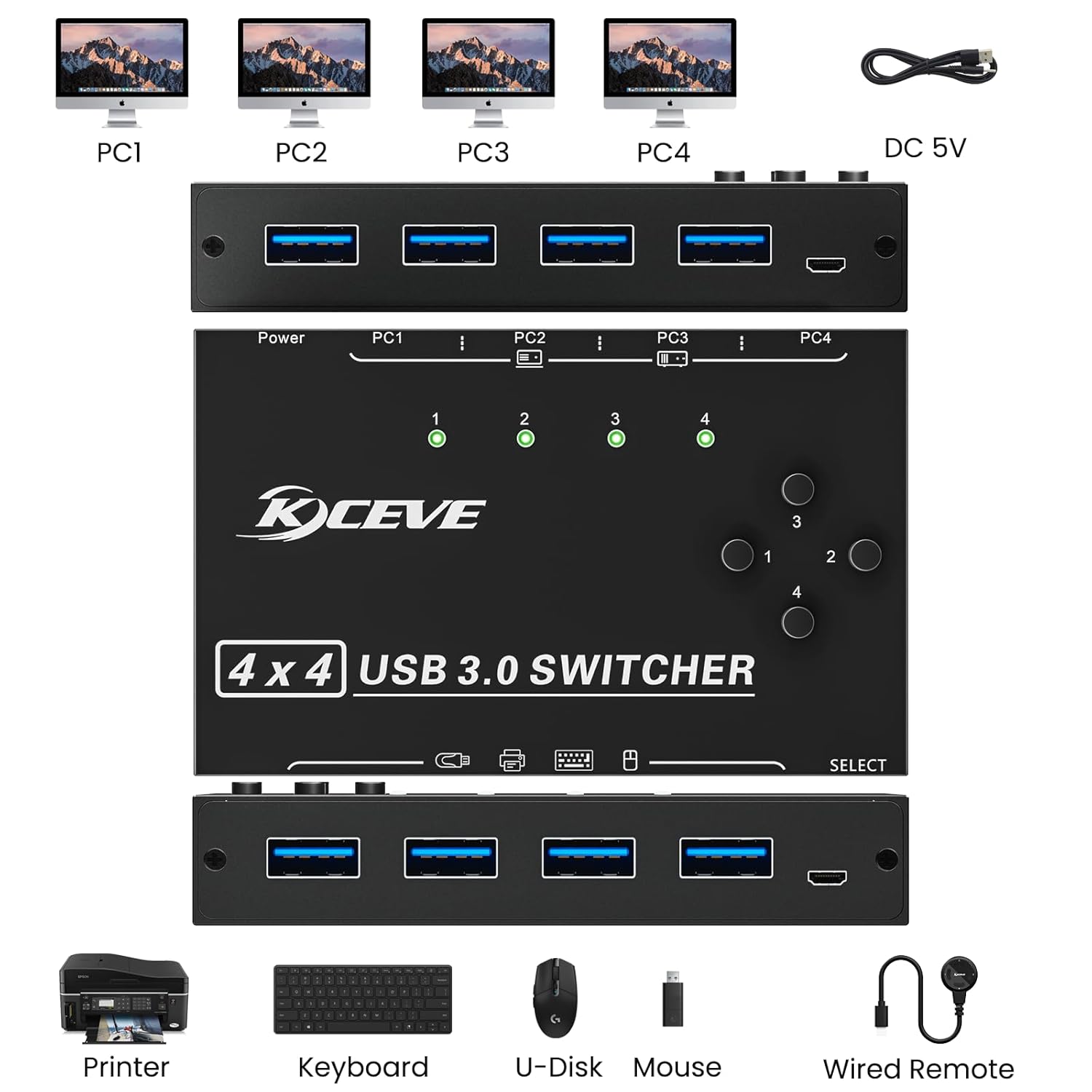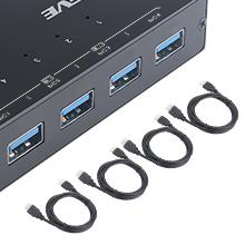 The USB 3.0 switch allows for fast and stable data transfer. It is a good choice for 4 computers that share 4 USB devices.
