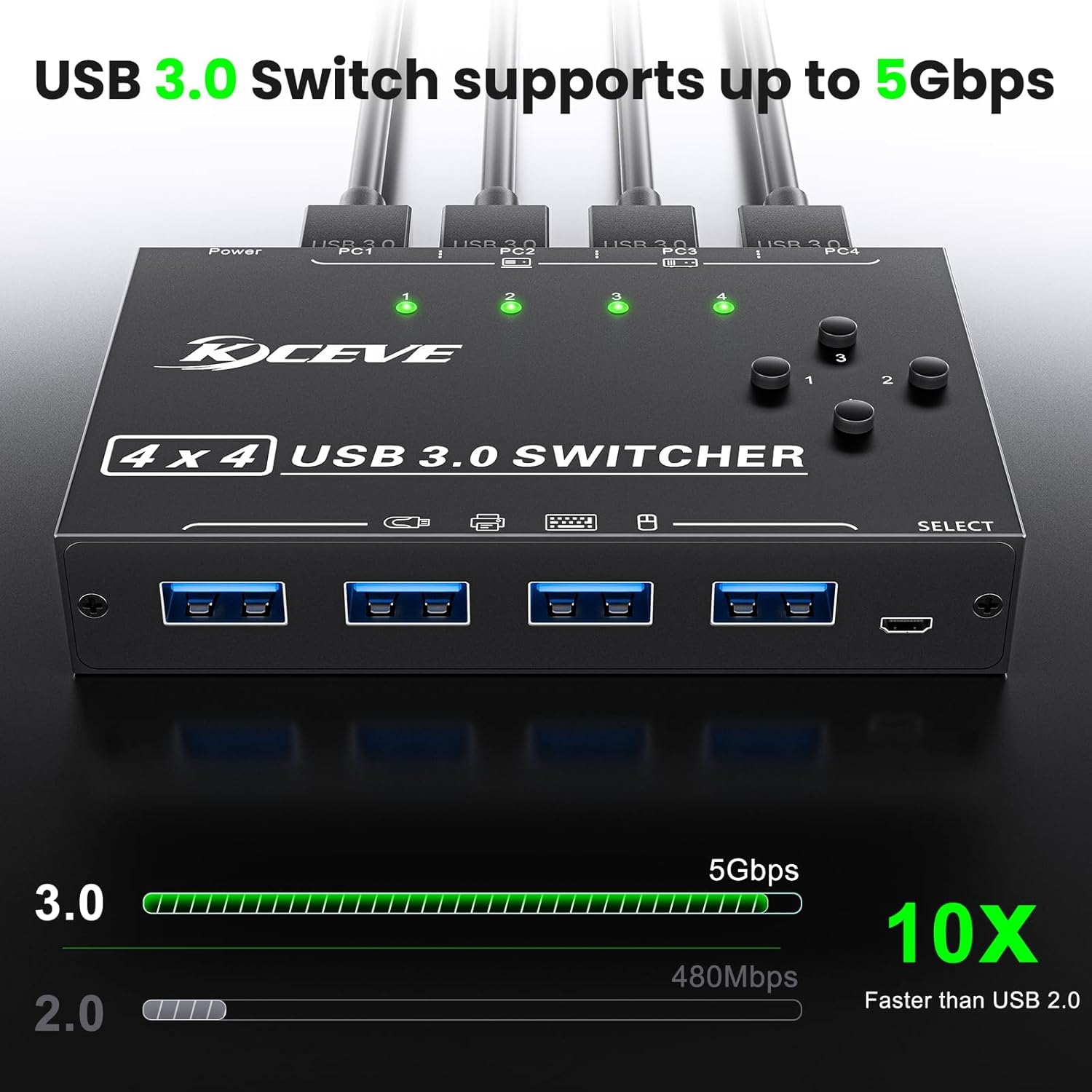 - The USB 3.0 switch selector supports ultra-fast USB 3.0 data transfer rates of up to 5 Gbps (10 times faster than USB 2.0). And is backward compatible with USB 2.0 and USB 1.1 devices. Save time and improve efficiency.